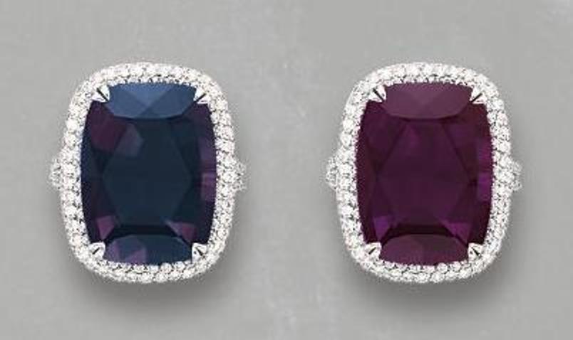 Another 18.23-carat, cushion-cut alexandrite of Ceylon/Sri Lanka origin mounted on a platinum ring and flanked on either side by a triangular-cut diamond, appeared at Christie's New York Magnificent Jewels Sale, held on October 15, 2013. The alexandrite was certified by AGL as of classic Ceylon/Sri Lanka origin, which also attested to its rarity and superior color-change effect. A pre-sale estimate of US$400,000-600,000 was placed on this alexandrite ring, which was sold within the estimate for US$557,000 equivalent to US$30,554 per carat.