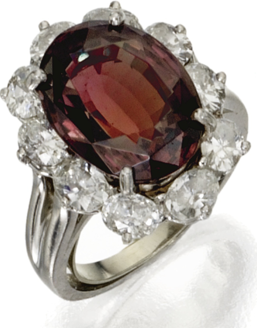The alexandrite that featured at Sotheby's New York in December 2012, was a relatively small stone weighing only 4.50 carats, but certified as Russian origin, set as the centerpiece of a platinum ring by Raymond Yard circa 1925, flanked by four trapezoid shaped diamonds and 16 round diamonds. AGL certified the stone as of Russian origin with a strong color change. A pre-sale estimate of only USD 25,000 to 35,000 was placed on the ring which sold for a much enhanced price of USD 170,500 in keeping with its Russian origin.