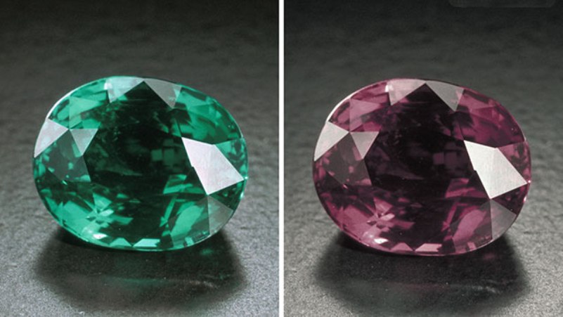 Fine quality Ural mountain alexandrites are green to bluish green in daylight and red to purplish red/reddish purple in incandescent light. Their color saturation is moderately strong to strong. Stones that are too light do not reach the quality of color intensity seen in fine-quality gems. Stones that are too dark lack brightness and appear almost black.