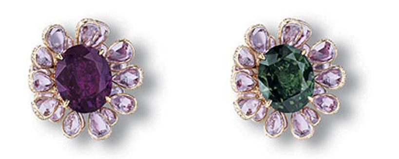 A stunning oval-shaped 16.80-carat alexandrite set as the centerpiece of an exquisitely designed flower ring by Wallace Chan, appeared at Christie's Hong Kong Magnificent Jewels and Jadeite Sale, held on November 28, 2007. The floral ring is designed to display the alexandrite's two stunning colors to their best effect, by the harmonius arrangement of pear-shaped, rose-cut diamonds and cabochon-cut pink tourmalines, like the petals of a flower, mounted in 18k pink gold and titanium. The lot was accompanied by a Gem Research Swiss Lab report certifying the natural origin of the alexandrite and its prominent color change from green in daylight to purplish-red in incandescent light. The report however did not specify the country-of-origin of the alexandrite. Despite this, the flower ring made a significant impact by selling for USD 434,842 within the pre-sale estimate of USD 360,000 - 450,000. The PPC value of this alexandrite works out to USD 25,883.