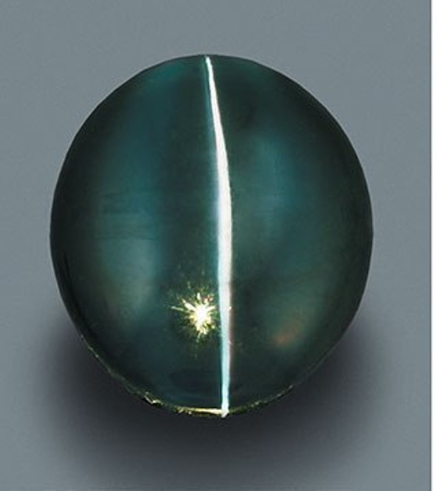 The following images of a perfectly chatoyant alexandrite with a green color in daylight and purple color in incandescent light, are from the gia.edu website.