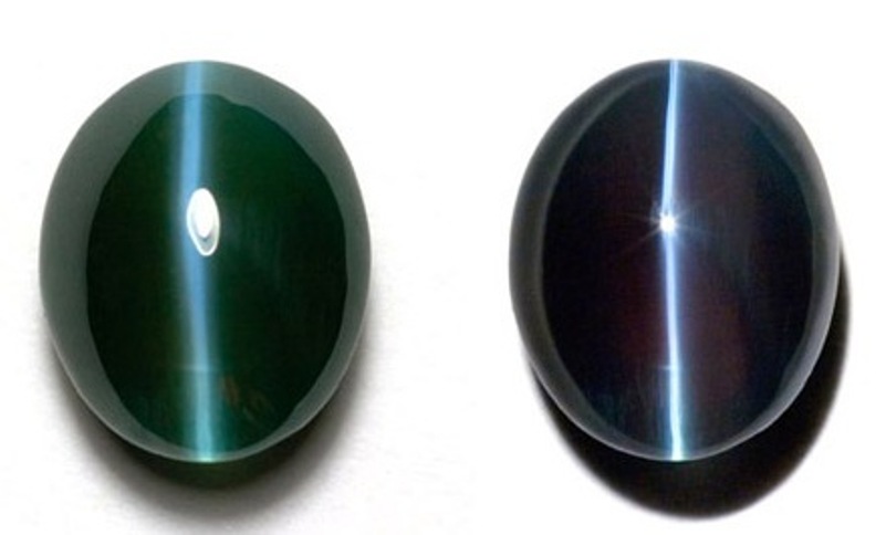 Another stunning catseye alexandrite from the website gem2000.com with the URL http://gem2000.com/news/2011/05/a-new-buy-in-fine-alexandrites/ also has a distinct color change from dark green in daylight to dark purple in incandescent light and a prominent chatoyancy with a sharp catseye effect.