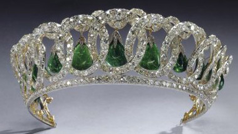 2) Adaptation of the Vladimir Tiara, with the pearl interchanged with emerald drops.