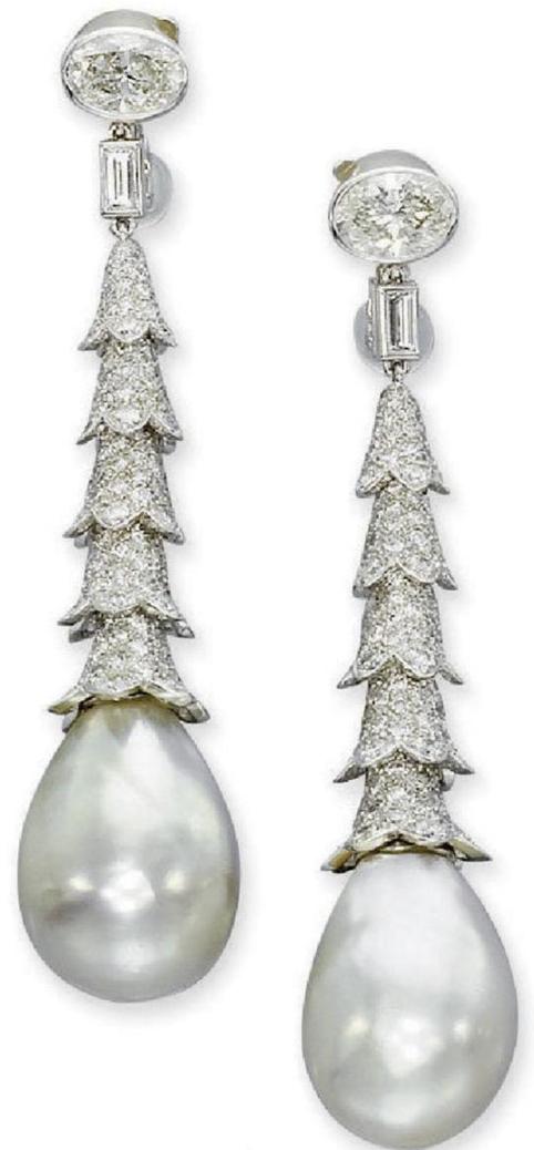 The following is a photograph of the Cartier's Natural Pearl and Diamond Ear Pendants :-