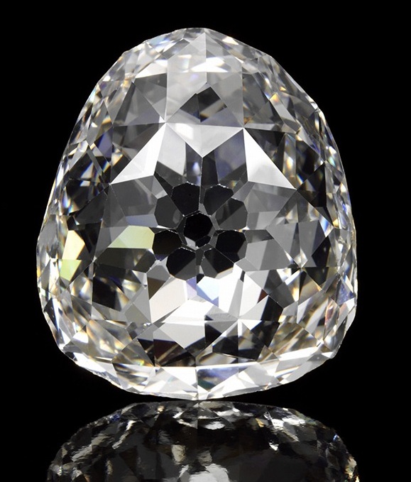 15) The Taj-i-Mah Diamond - A 115.06-carat, Type IIa colorless Golconda diamond, with an old Moghul-cut (Indian rose-cut), and dimensions of 32.0 x 24.3 x 14.7 mm; part of the Iranian Crown Jewels, preserved in the Museum of the Treasury of National Iranian Jewels in the Central Bank of Iran,Teheran.