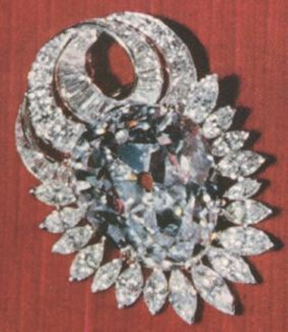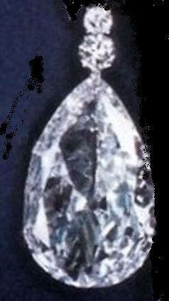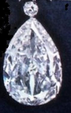 9) The Nepal Diamond - A 79.50-carat, pear-shaped, antique brilliant, a Type IIa colorless Golconda diamond, of unknown color and clarity grades, a valued possession of several rulers of the Royal house of Nepal, eventually purchased by Harry Winston and slightly re-cut to 79.41 carats and set as the centerpiece of a pendant/brooch combination.