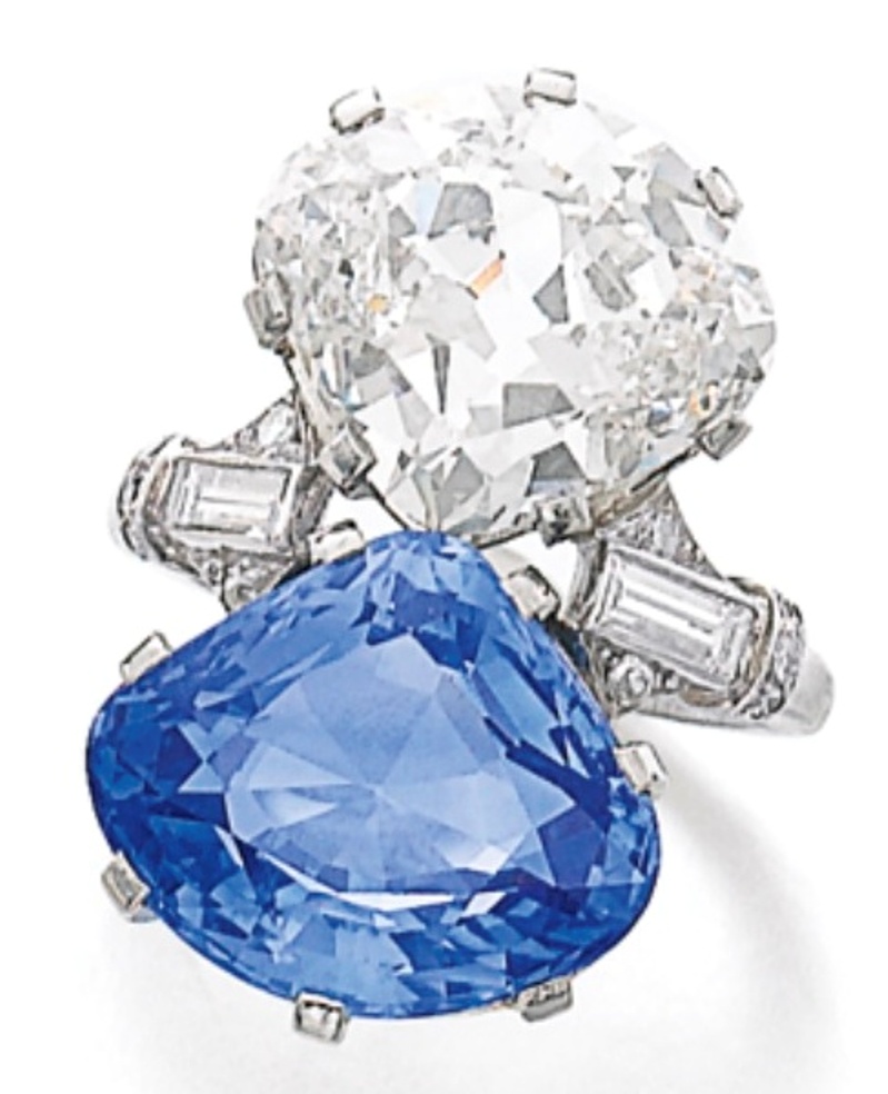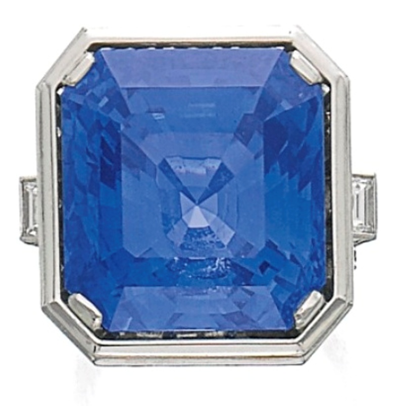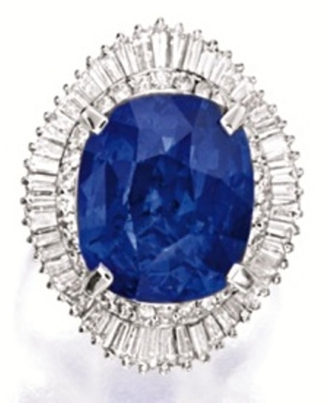 Lot 1796 - was a Sapphire and Diamond Ring designed by Cartier - The platinum ring was set with a 13.28-carat, cushion-shaped Ceylon sapphire as its centerpiece, flanked on each side by a shield-shaped diamond. An SSEF report certified the Sri Lanka origin of the stone, with no indications of heating. The lot sold within the pre-sale estimate of USD 154,584 - 206,112 for USD 190,654 working out to a ppc-value of USD 14,356.