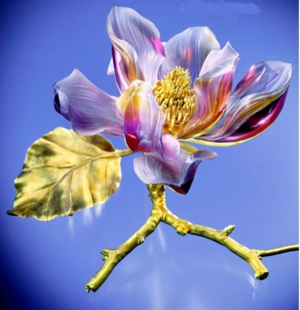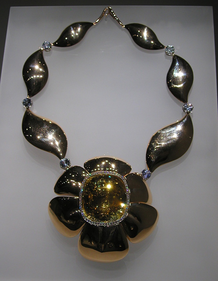 Another stunning piece by Gunter Petty is the "Magnolia Flower" carved out of natural Ametrine Quartz, which has shades of purple and yellow in the same crystal and also using yellow gold in the setting - total weight 1,250 carats.