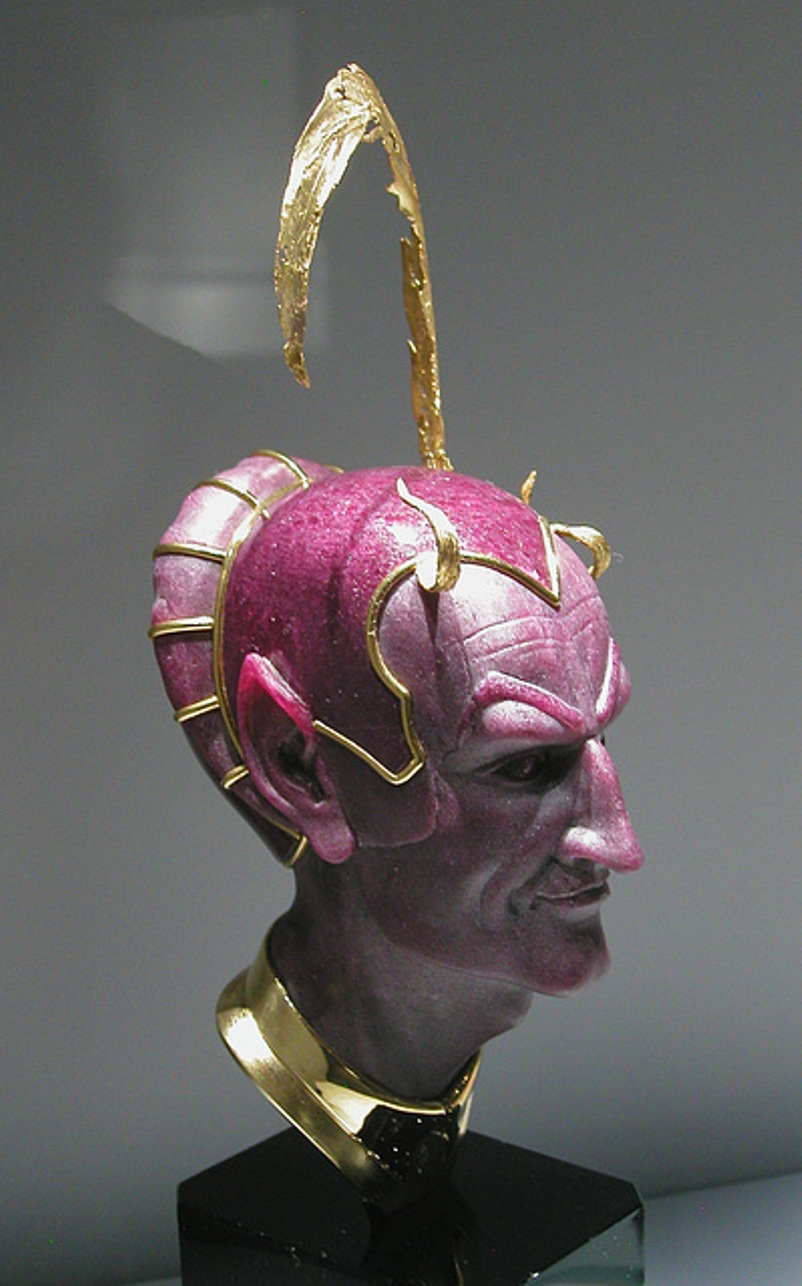 The "Mephisto" is a sinister-looking, 5,650-carat bust of Satan, with piercing blood-red eyes and red-gold horns and collar, carved from a single ruby crystal from Tanzania weighing 5,750 carats, and mounted on an obsidian base.