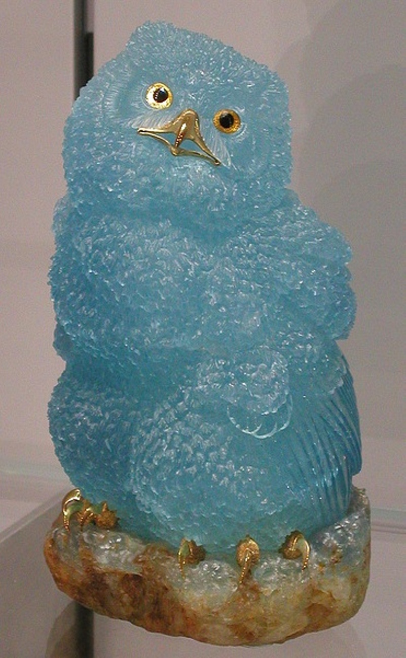 Another stunning gemstone sculpture from Idar-Oberstein is the Aquamarine-Beryl Owl sculpted from a single large aquamarine crystal from Nigeria.
